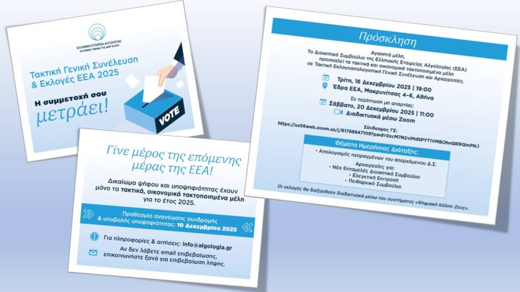 ΤΑΚΤΙΚΗ ΓΕΝΙΚΗ ΣΥΝΕΛΕΥΣΗ ΚAI ΕΚΛΟΓΕΣ ΕΛΛΗΝΙΚΗΣ ΕΤΑΙΡΕΙΑΣ ΑΛΓΟΛΟΓΙΑΣ